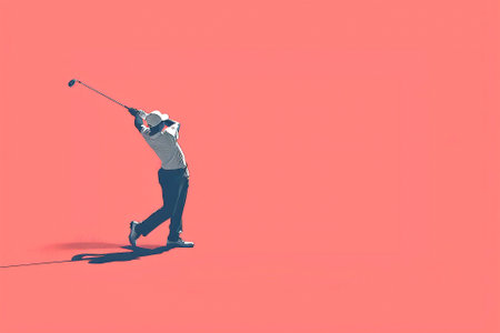 Stylized image of a golfer in mid-swing against a vibrant background, capturing motion and energy. Generative AI
