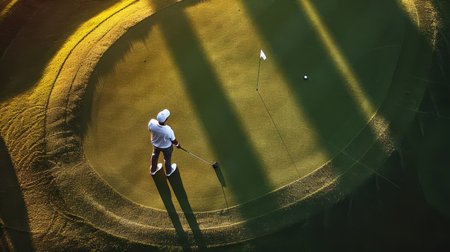 Golf player on golf resort field on training his skills playing golf on summer evening.AI Generative.