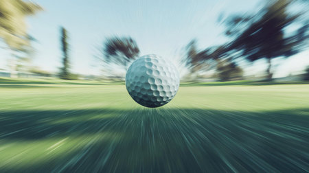A captivating close-up image of a golf ball rolling across a smooth surface, enhanced by motion blur that evokes a sense of speed and excitement in the sport.