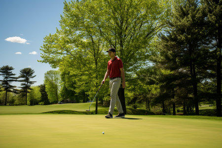 Golfing on a bright sunny day at the golf course with perfect weather conditions