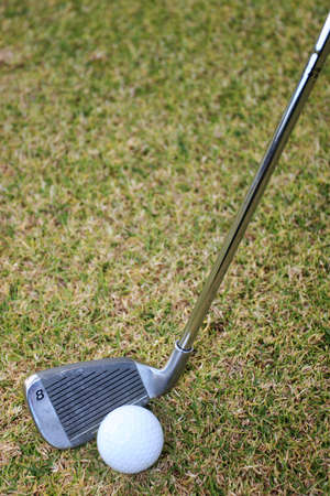 Blurred golf club and golf ball in grass field. high quality photo