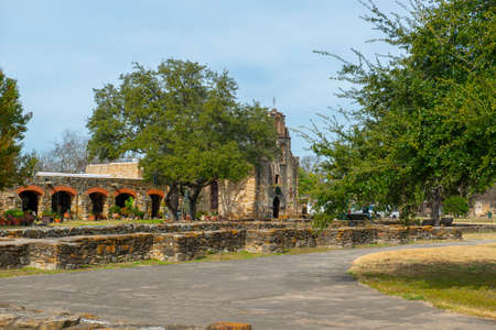 Mission San Francisco de la Espada in San Antonio, Texas, USA. The Mission is a part of the San Antonio Missions UNESCO World Heritage Site.