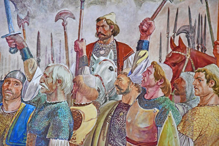 Transform historical narratives of revolutionary wars into visually compelling imagery Use a highangle view to bring key figures and impactful scenes to life, creating a powerful and emotive depiction for a modern audience