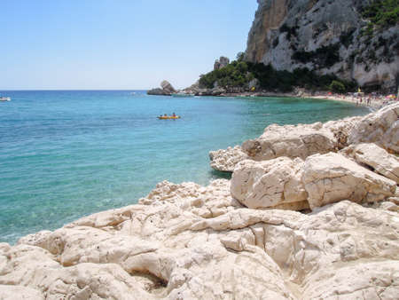 Cala Luna, Italy - 28 June 2013: people swimming and sunbathing at Cala Luna beach on Sardinia, Italy
