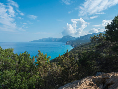 sea ​​of ​​the gulf of orosei sardinia panoramic view of the cliffs and the sea
