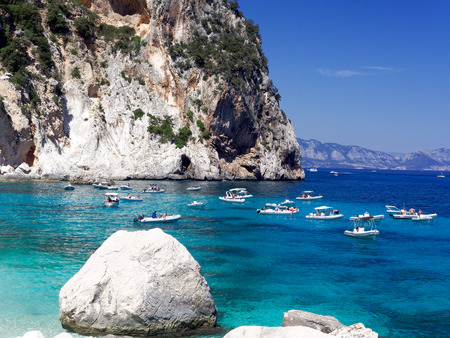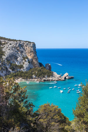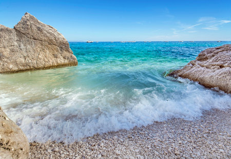 beautiful rocky beach of cala Goloritze in Sardinia-Italy, with turquoise and crystalline sea between rock