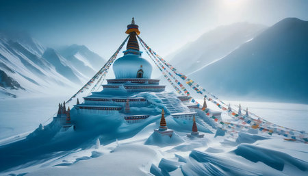 Serenity Embodied: The Majestic Buddhist Stupa atop the Himalayas