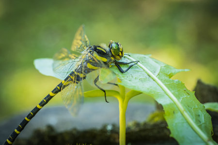 Ophiogomphus cecilia. Dragonfly on the green leave