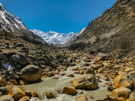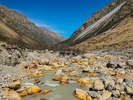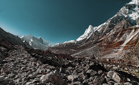 Valley and Mountains View in Himalaya. Gaumukh glacier, Gangotri, Uttarakhand, India.