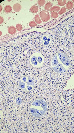 This detailed microscopic image showcases various cellular structures, highlighted in striking purple tones. The intricate patterns and textures reveal the complexity of biological tissues, making it a valuable resource for educational and scientific purposes