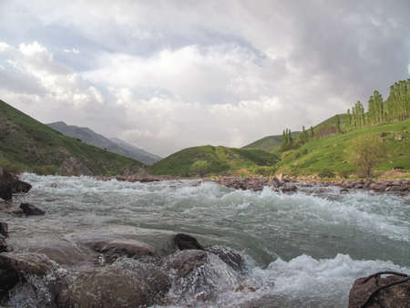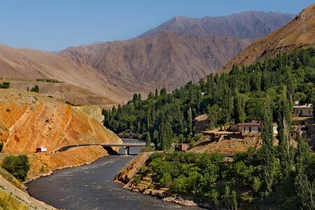 Tajikistan. Mountain river Zaravshan along the highway between Sughd region and Dushanbe.