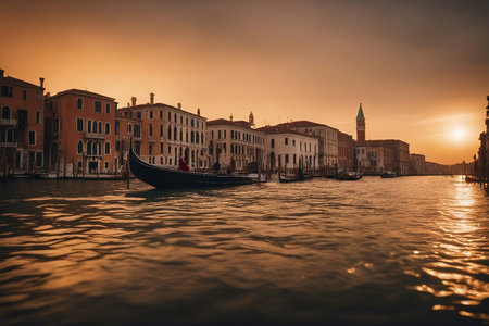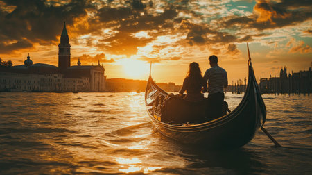 A romantic gondola ride under the Venetian sunset, capturing the essence of elegant love stories -