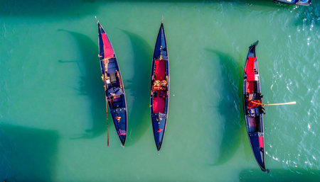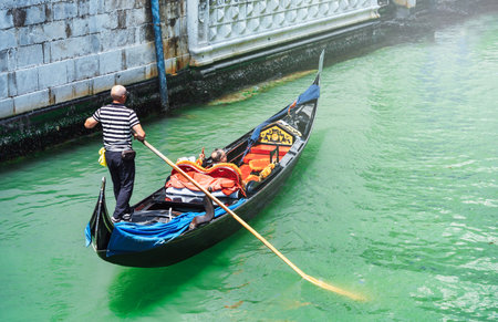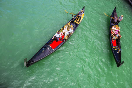 Venice, Italy - May 25, 2019: overhead view of tourist is gondola summer vacation