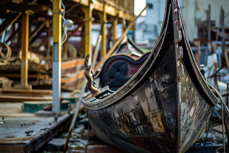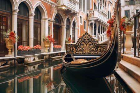 ornate gondola details with venetian architecture backdrop, created with generative ai