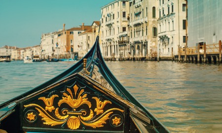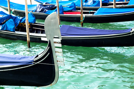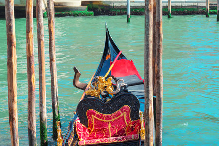 bow of the boat to transport tourists to Venice in Italy called Gondola moored on the Grand Canal