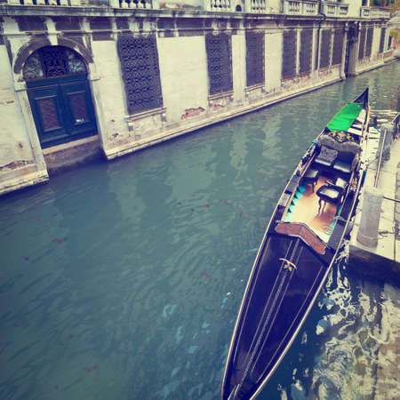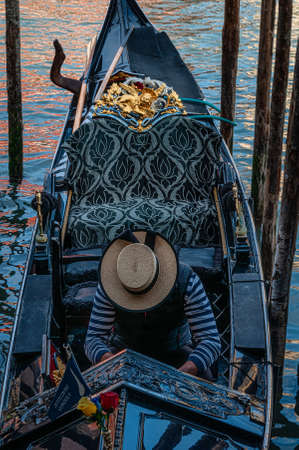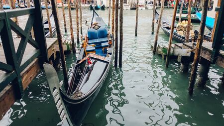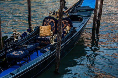 Gondola for renting tourists along Grand Canal in Venice, Italy.