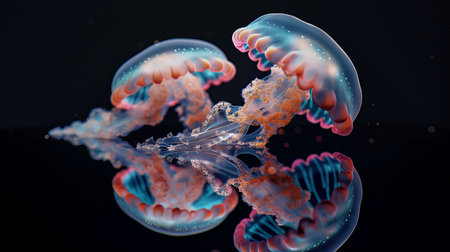 Jellyfish on a black background. Jellyfish in the water. 3d rendering