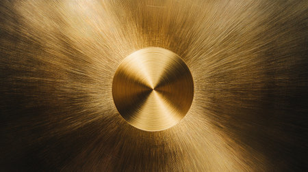 This abstract golden metal background features a radiating texture with a central circular design, ideal for artistic and modern projects. Its elegant shine creates a vibrant visual appeal, suitable for use in various creative applications.