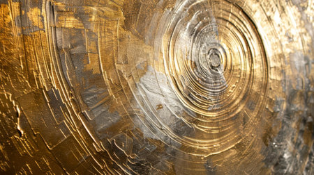 Warm light catches the intricate textures of a golden metallic surface, revealing concentric circles that seem to ripple outward.