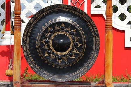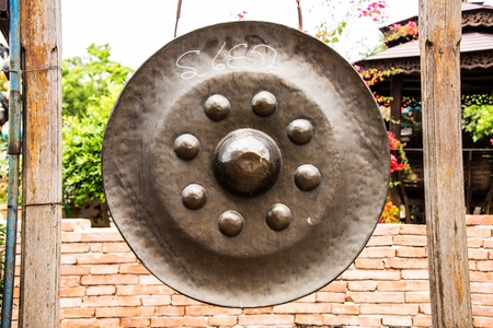 Buddhist strike a gong in Nongpai Temple, Nakhonsawan Province, Thailand.
