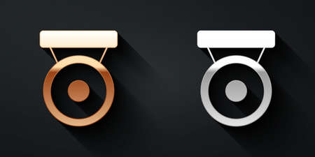 Gold and silver Boxing gong icon isolated on black background. Boxing bell. Long shadow style. Vector
