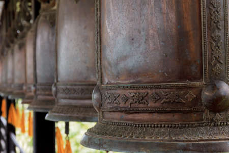 Golden Siam Bell in Buddhism Temple closeup in golden vintage tone