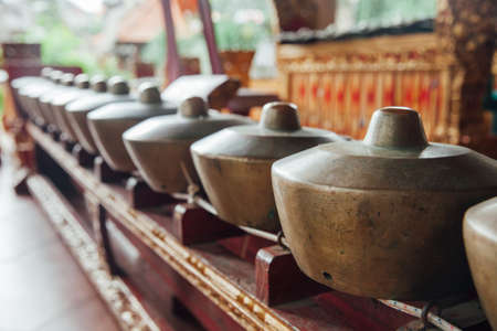Traditional balinese percussive music instruments instruments for Gamelan ensemble music, Ubud, Bali, Indonesia.
