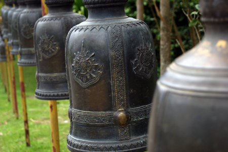 Array of bells in Nong Nooch Botanical Garden, Pattaya, Thailand.