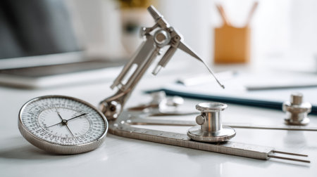 A collection of precision drafting tools arranged neatly on a bright workspace. This image showcases professional equipment essential for accurate designs and measurements.