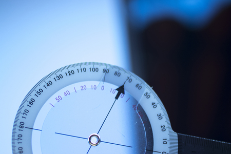 close up of mathematical instrument protractor