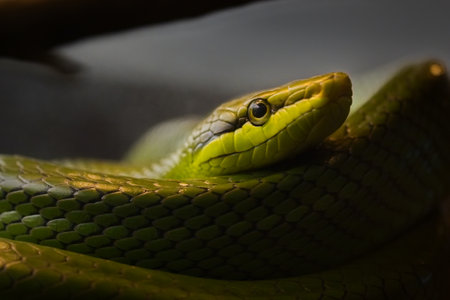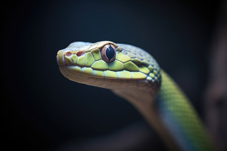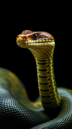 Majestic snake posed elegantly against a dark background in a striking display of natures beauty and detail