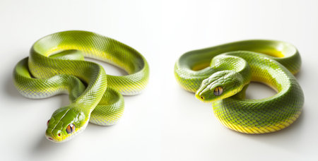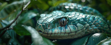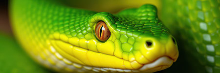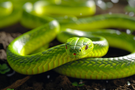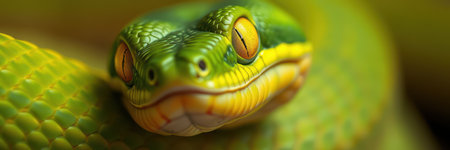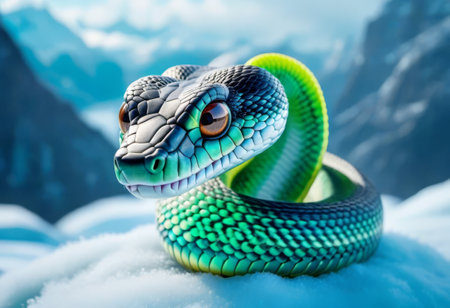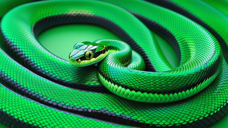 Marvel at the intricate details and vibrant hues of this stunning green snake, captured in lifelike clarity. Perfect for nature enthusiasts and art lovers alike. Symbol of the 2025 year. Generated A.I.