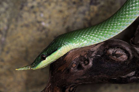 Portrait of a green snake, Green gonyosoma snake looking around Gonyosoma oxycephalum