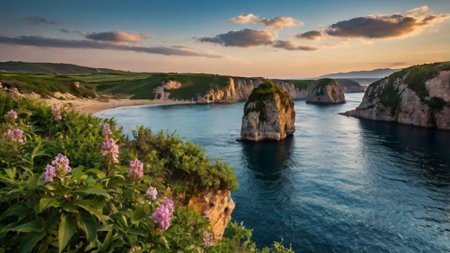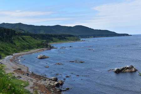 Beautiful view of the Unnamed bay on the island of Shikotan, Kuril Islands.