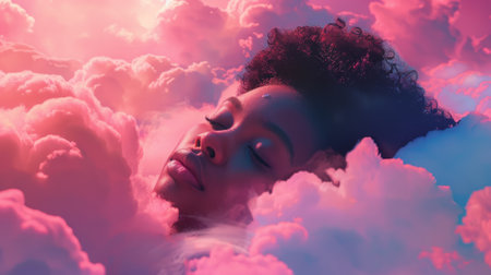 Afrodescendant woman sleeping on a cloud generative ai