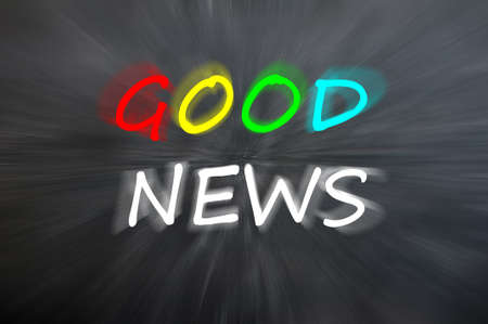 Chalk drawing of Good news written on a blurred chalkboard with motion rays