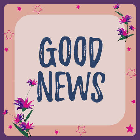 Handwriting text Good News. Conceptual photo Someone or something positive,encouraging,uplifting,or desirable Frame Decorated With Colorful Flowers And Foliage Arranged Harmoniously.