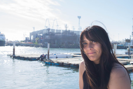 beautiful mexican woman sitting on boat in the sea