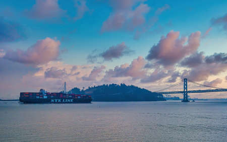 Container Cargo Ship entering San Francisco Bay - San Francisco, California, USA