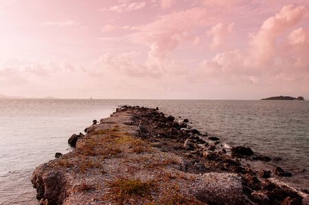 Rock cape pink tone Sunset or sunrise sky in Samui - Thailand tropical isalnd beautiful nature scenery in evening or morning