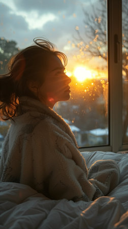 Awakening gently as dawn breaks, the person embraces the new day with refreshed vigor