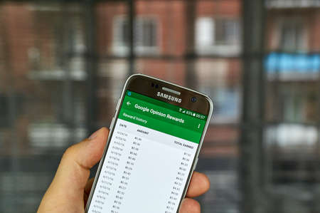 MONTREAL, CANADA - JUNE 23, 2016 : Google Opinion Rewards application on Samsung S7 screen. Google Opinion Rewards is an app created by Google Consumer Surveys.