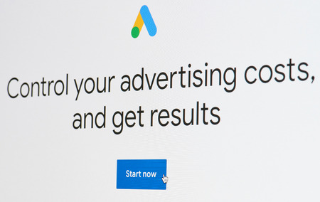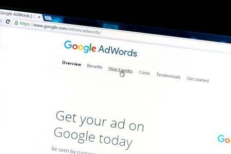 Google Adwords website on a computer screen. Google AdWords is an online advertising service.