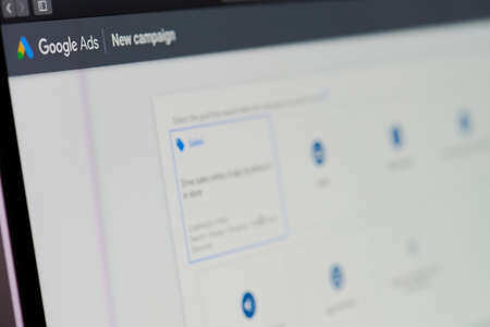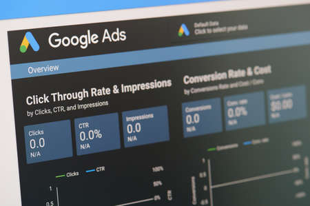 New york, USA - October 23, 2020: Viewing google ads report screen display close up view