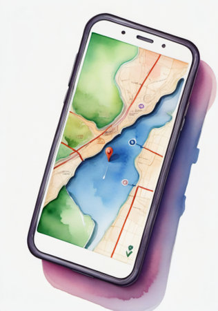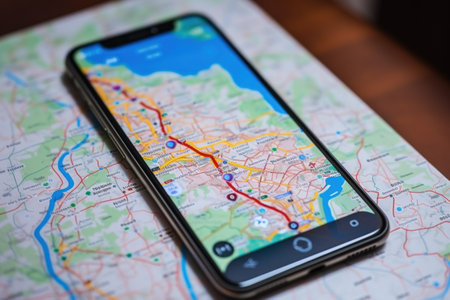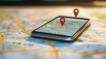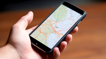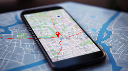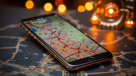 Smartphone with GPS navigator on map