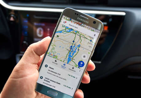 MONTREAL, CANADA - AUGUST 23, 2017 : Google Maps mobile app. Google is an American multinational technology company that specializes in Internet-related services and products.