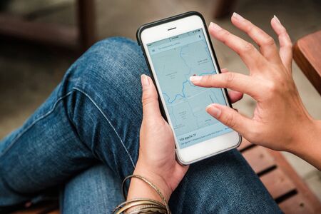 BANGKOK , THAILAND - April 18,2017: Businessman hold Smartphone with Google Maps application on Apple iPhone. Google Maps is a service that provides information about geographical regions and sites around the world.