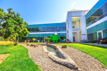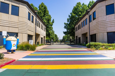 Mountain View, California, United States - August 13, 2018: Android Nougat on Charleston Campus of Google HQ in Silicon Valley near Googleplex. Building 46.