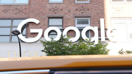 Wroclaw, Poland, Google company office building exterior logo symbol detail, closeup, nobody, no people. Google enterprise business brand logo, office in the city