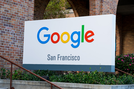 San Francisco, USA - August 2019: Google sign on the entrance of San Francisco campus